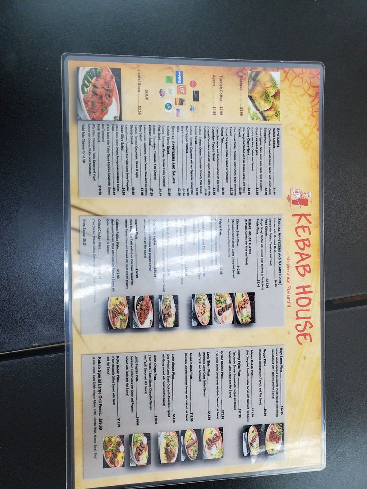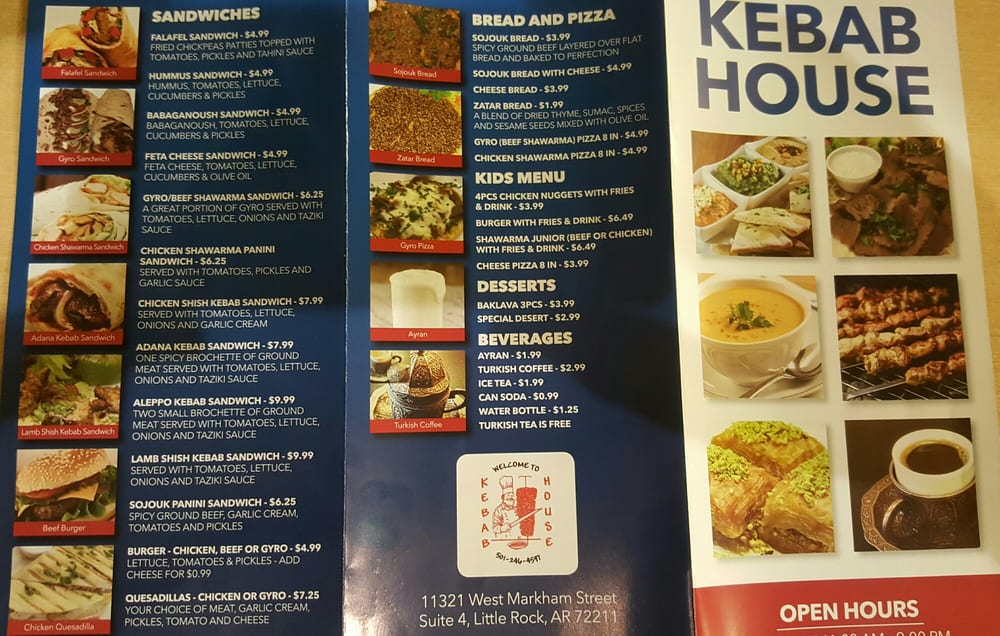 Introducing the menu at Kebab House, a casual yet classy restaurant offering a variety of Mediterranean dishes in Little Rock, AR. The menu boasts a wide range of sandwiches, including Gyro, Falafel, and Adana kebab sandwiches, as well as Kebab House Plates like Chicken shish plate and Adana Kebab Plate. Special appetizers and salads like Feta salad and Chicken salad are also available. Customers rave about the quality and flavor of the meats, fresh pitas, and hand-cut fries. The garlic sauce is a standout favorite, adding a delicious touch to the dishes. With friendly service and consistently delicious food, Kebab House is a must-visit for those craving authentic Mediterranean flavors in a welcoming atmosphere.